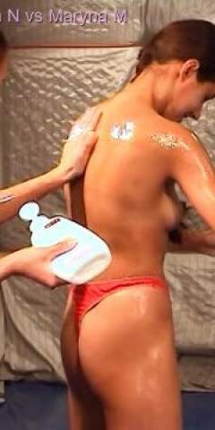 MessyMegan was pushed down a long slip-n-slide covered with custard by LeRex
