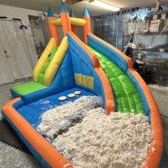 MessyMegan got dunked by WAMfuns Messy Forfeits in a huge slime dunk tank