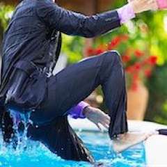 Geebee got pulled into the pool with Kiminwetjeans