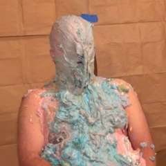 Messymissmia was surprised by The Great Reinholdo with a big sloppy cream pie to the face