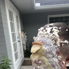 Luvs2pie got a big melty ice cream sundae dumped over his head by JustJade